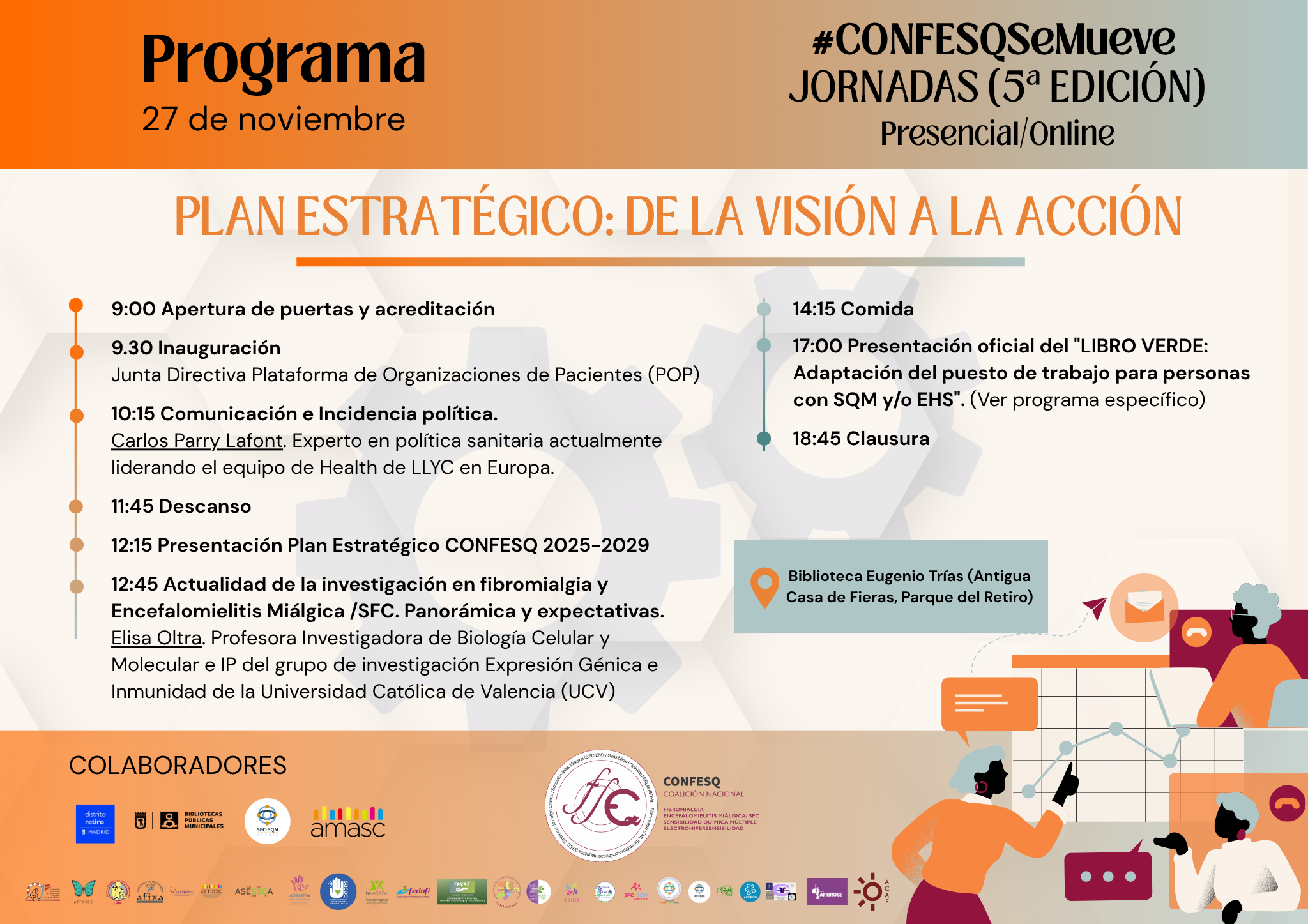 Las Jornadas #CONFESQSeMueve celebran su 5ª edición este 27 de noviembre de 2025, combinando formato presencial y online desde la Biblioteca Eugenio Trías (Antigua Casa de Fieras, Parque del Retiro, Madrid).